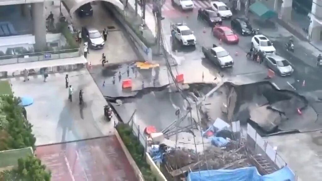 Um imenso buraco, com impressionantes 50 metros de profundidade e abrangendo mais de 900 metros quadrados, surgiu repentinamente em uma movimentada avenida de Bangkok, na Tailândia, causando grande impacto e preocupação. O incidente ocorreu nas proximidades de um hospital localizado no coração da capital tailandesa.