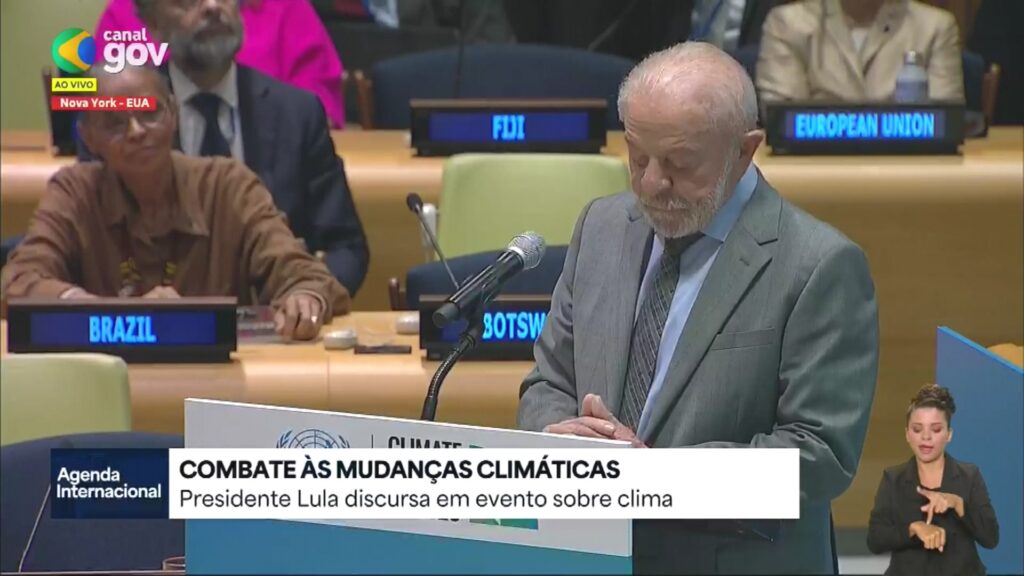 O presidente Luiz Inácio Lula da Silva participou da abertura do Evento Especial sobre Clima para Chefes de Estado e de Governo, em Nova York, nesta quarta-feira (24.set.2025). O evento, que encerrou a 80ª Assembleia Geral da ONU, foi organizado pelo secretário-geral António Guterres em conjunto com o governo brasileiro, e serviu como palco para a Cúpula Virtual sobre Ambição Climática.